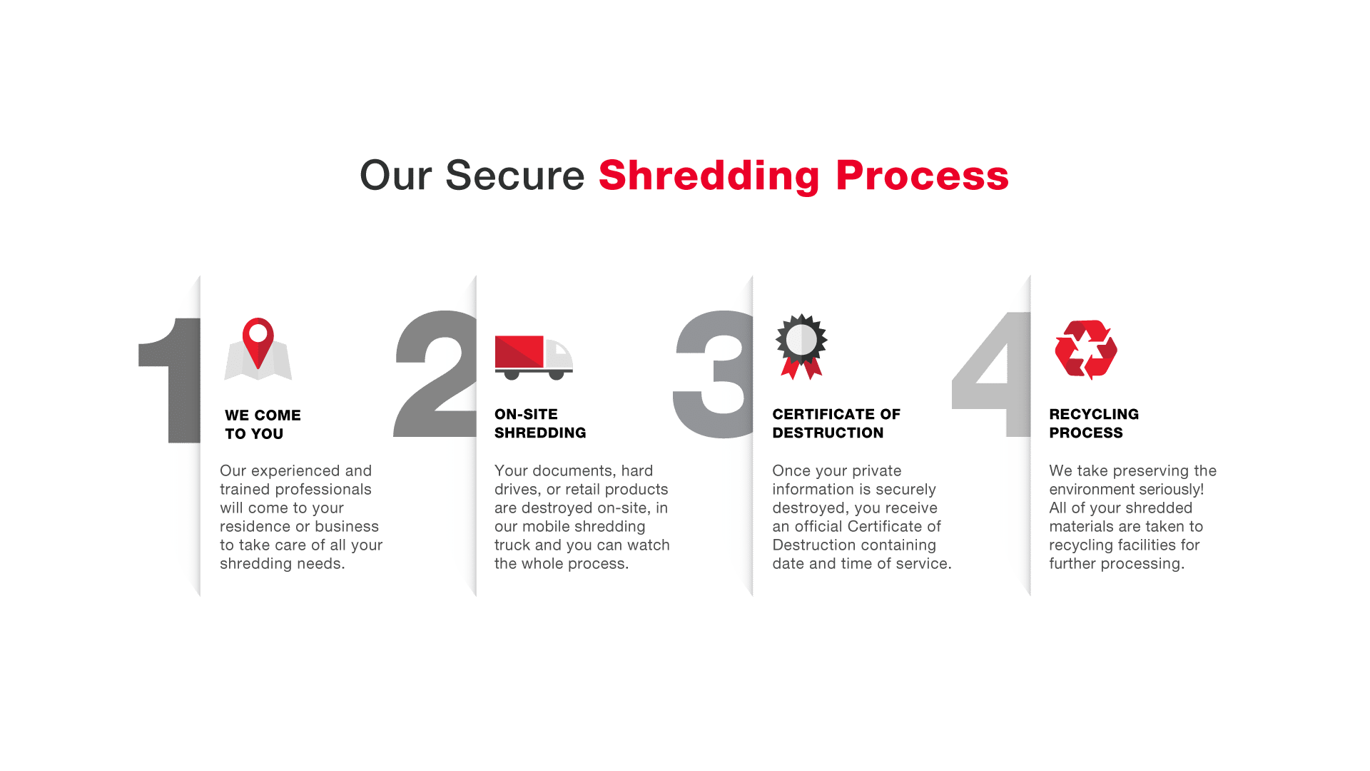 Proshred®, continues to be a leader in hard drive destruction services, ensuring the proper disposal of your devices. Our process is straightforward and effortless, we come directly to your business location, retrieve the devices needing destruction, and handle the rest.