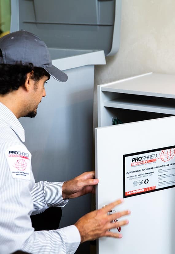 Proshred®’s on-site shredding business and recycling service provides any business with the most secure, convenient, cost-effective and environmentally sound method available for destroying confidential documents to safeguard private information, maintaining legislative compliance and avoid breach-of-security situations that might result in negative publicity.