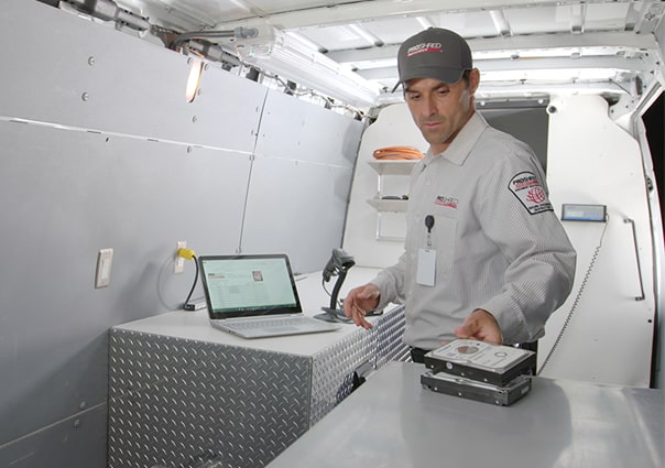 PROSHRED® offers secure hard drive destruction. Protect yourself and your business from a security breach by ensuring your confidential digital data is destroyed with our on-site hard drive shredding service. Electronic and mixed media can also be destroyed.