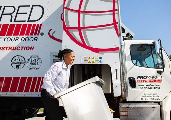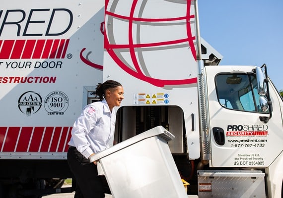 Proshred® 's shredding service is a secure and environmentally friendly process that emphasizes privacy and sustainability. Each shred is completed to the highest level of security. Once your documents are completely destroyed, most of them are recycled, using local recycling facilities.