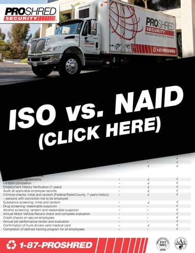 Proshred® is a secure on-site document shredding company. We are a certified member and meet the rigorous standards set forth by NAID (National Association of Information Destruction). This certification for quality management and customer satisfaction is the industry benchmark for excellence in performance and security.