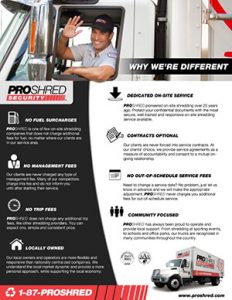 In addition to its certifications and qualified CSPs, PROSHRED® San Francisco Bay Area offers other benefits, making it the most trusted paper shredding company in the area. Our pricing plan is simple, as you will never pay for fuel, management, or trip fees.