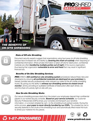 All Customer Service Professionals (CSPs) at PROSHRED® San Francisco Bay Area must annually complete and pass a rigorous training program. Each of our paper shredding experts must also sign a Customer Confidentiality Agreement and pass both a criminal background check and drug test. Our company goes through strenuous efforts to ensure we hire only the best of the best who are committed to maintaining total confidentiality while protecting your sensitive information.