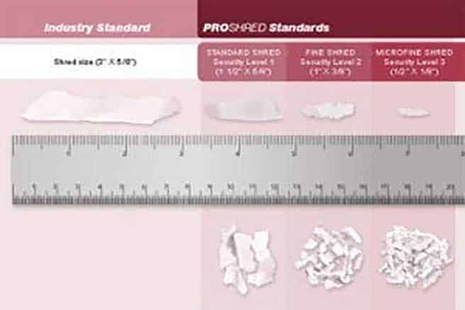 All Proshred® locations including St. Louis, can achieve Level 1 shred sizes with many locations catering to Level 2 and 3. Level 1 is viewed as very secure to most clients, with security and government agencies requiring exceptionally high-security level shreds. Level 1 shred sizes are almost 3 times smaller than regular in-house shredders, which provides more reason to partner with Proshred® for the most secure on-site destruction methods available.